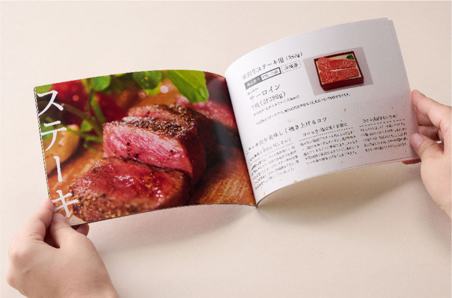 カタログの中から、すき焼き用、焼き肉用など、お好みに合わせてお好きな米沢牛をお好きなタイミングでお取り寄せいただけます。