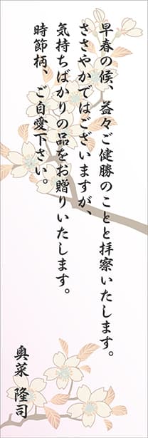 せっかくだからひとことお伝えしたいという方に。「一筆箋(いっぴつせん)」とは、贈りものにひとこと添えられる、短冊状の小さな便箋のことです。形式やマナーにとらわれず、短い文章にのせて、伝えたい想いを届けることができます。定型文も豊富で安心。