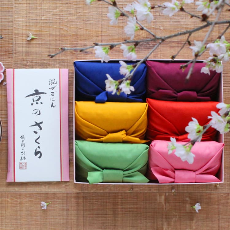 明るい色合いの風呂敷包みとさくらごはんが、春の訪れにワクワクする気持ちを盛り上げます。春らしいグラデーションに心も華やぐ、春限定の贈りもの。