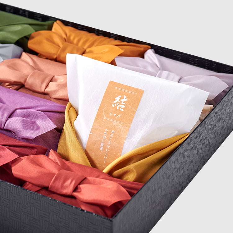 箱をあけると、心に沁み入る和のグラデーション。一つひとつにまごころをこめて、熟練の職人が大切にお包みしております。