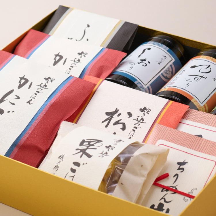 冬の食卓を飾る、厳選美味。厳選された良質な12種類のお米と、極上のお米を引き立てる、豪華な「お供」の詰合せ。冬ならではの「かにごはん」や「ふぐそうすい」等、食卓を一気に華やかにする冬の味覚をお楽しみいただけます。手間なく本格的な味わいが楽しめる、冬の特別な贈りもの。